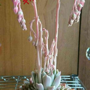 エケベリアに詳しい方にお聴きしたい💦 形態がかなり変になり しかも花芽が沢山💦 エケの花芽は 親株の為に切った方が 良いのでしょうか?