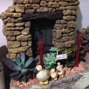 左から順に、フクロウ、猫、カエル 多肉も小さくて、 かわいいなぁ~♡〜٩( ˶´꒳`˶ )۶〜♡