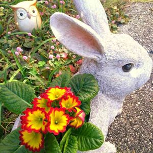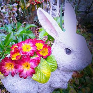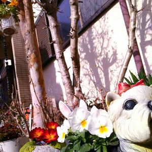 今日は朝から冷たい雨です☔ うさちゃんポットの中暖かいのかな😆 プリムラが元気に咲いています💞😊