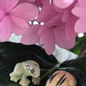 🌸テマリテマリ🌸の下で語らうカエル🐸🐸さん達。アニマル雑貨のカエルを登場させると約束していた G Sフレンドさん、見てくれるかな?
