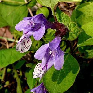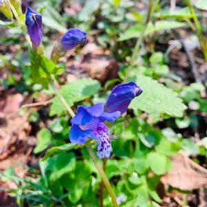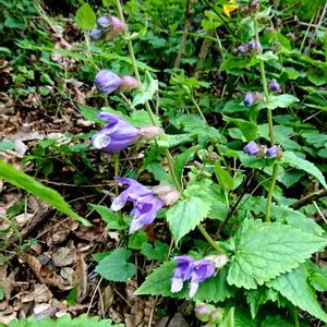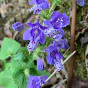 5/2 角田山 ⑥ この日、一番、賑やかに咲いていた花です。 ラショウモンカズラ(羅生門蔓) シソ科ラショウモンカズラ属の多年草 花の色、大きさ、立ち姿、みな存在感抜群です。さらに群生まですると、マァ、見事な物です。オイラは見なれているけど、初めての人は、どんな印象を持つのかナ。やはりスゴイのかナ⁉️ 🎉🎉🎉💘💘💘🎊🎊🎊 名前の由来は「切り落とされた、鬼女の腕」だそうですけど、どんな発想なのかナ。つる性では無いのに蔓は、地上を這う長い走出枝を出すそうです。オイラは未確認。アレ、この前も有りましたネ。ツルカノコソウのツルも、同じ意味でした。 ✌️✌️✌️😃😃😃✌️✌️✌️ この娘は目立つし見間違える事は有りません。