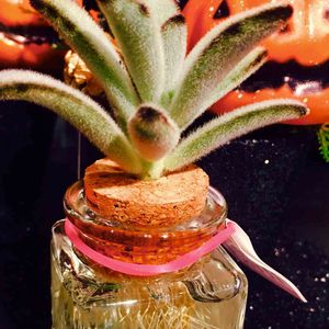 こんにちは😃浦和美園店 遠藤です☘ アップにすると、黒兎耳(くろとじ)のフワフワの質感が映えます✨╰(*´︶`*)╯♡ この子、よく見ると水耕栽培っ子なのです☘ 瓶の中には,ビー玉もコロン○ タニクちゃんの根っこ モシャモシャで生命力を感じちゃいますね(*´∀`)♪