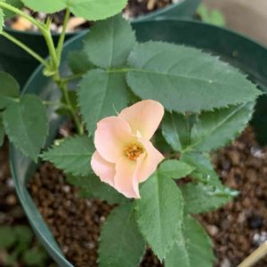 ボルデュールアブリコの実生 セルフで出来た種からのお花です 一重なんだね∩^ω^∩ 薄っすらとオレンジ色が🧡 そこは遺伝してるのね♬