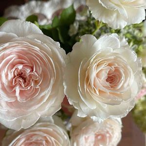 7月の終わりに蕾をつけた クリスティアーナ🌹 切り花に咲かせた時の一枚。 花びらの枚数が100枚以上の イングリッシュローズ。 やっぱり美しい💓