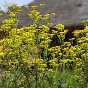 今日のお花 オミナエシ 茅葺き屋根に似合います。
