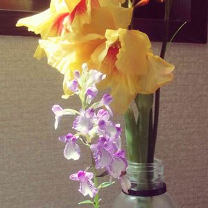 おはようございます😃 台風は向かってきていますが、気温が下がってくれて、幾分、体力が回復してきました。 今日のお花、グラジオラス。 んが、しかーし。 大好きな😘ウチョウラン、夢チドリちゃんの方が全面自己アピールしちゃっててスミマセン😋 黄色オレンジ🧡系と白紫系💜のコントラストが朝日で玄関を明るくしてくれます。 丁度、1ヶ月ほど前の様子。 現在はチドリちゃん、最後の一花が咲いているところです。猛暑にも耐えてくれました。 私も皆様も、植物達に元気癒しパワーチャージして、1日を過ごせますように🧚♀️