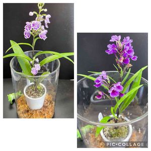 種蒔きから育てたウチョウランです🌱 用土にダンボールを刻んで混ぜると不思議と芽が出てきます🌱📦 クロシオチドリと呼ばれる九州の系統だそうです💕。