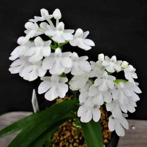 椿山の純白花 四国産の大きくなるタイプのウチョウランです😁 数年前まで苦手だったウチョウラン栽培ですがコツがわかればなんとかなり、この品種も10倍に殖えました😆 作は今一です😃
