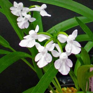 ウチョウラン 白紫点花 雪しぐれ やっぱりウチョウランいいですね😆 真っ白い花弁に紫の模様が入るもの、白紫点花と言います😁清楚です😆