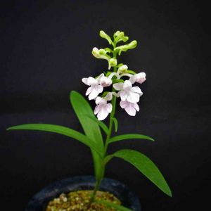 ウチョウランの仲間のサツマチドリです。一時期ハマっていたウチョウランは、ウイルス症状が見るに耐えられなくなって一旦は全部サヨナラしたのですが、この株は何年か前にホームセンターで寂しそうにしていたので、連れて帰って増やしました😅。お値段はブームの頃のウン10分の1でした😆。