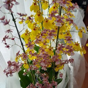 オンシジューム・ フレグランスファンタジー💠 黄色がやっと開いた✨ いい香り😍 ⬅️娘たちがくれた誕生日プレゼント第2弾 可愛い過ぎて嬉し過ぎる😆 私がこれを持っても大丈夫だろうか??😅 諭吉もクンクン😻 今日、整体に行ったら先生がニコニコしながら驚いて「可愛い✨」って😁 私が持っても大丈夫か聞いたら「大丈夫‼️👍️」って言ってくれた🤣