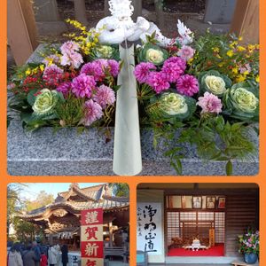 〜 お正月らしい花手水🎍 〜 先程地元の神社に初詣をしてきましたが、境内の手水舎の花手水が松・葉牡丹・南天などお正月モードになっていて気持ちが良かったです😄 最近この神社⛩️は密かに人気が出てきたようで年々参拝者が増えてるように感じます🙂