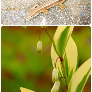こんにちは。 ⬆️うちの子 カナヘビさん 先日は幼体の子が。 今回 大人の子が出てきてくれました。🦎可愛い🦎💖 ⬇️おきょうさんの 『空耳アワー』 アマドコロ→尼のドクロ💀 きゃ〜😱何があったの⁉ホラーだわ。 アマドコロ前に撮ったなぁと探すも携帯pic有り過ぎて見つけられず pic趣味の園芸から