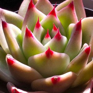 紅葉したら エケベリア・ジェイドスターさん😻💚💛❤️とそっくりな事に気が付いた エケベリア・ジェイブルーさん💚💛❤️ ジェイの下の名が違うだけ👀💧 シスターなのか お名前だけ変えて販売なのか 我が家に先にお迎えした ジェイドスターさんのプレートが間違ってたのか 現在注視中…⚠️