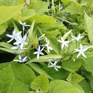 🏷️五月ミドリン💚 無理があるけど😅🏷️美しく青きドヨウ 🏷️おしゃれな土曜日♪ 爽やかグリーンの紫陽花アナベルの葉の間から 顔出した🤗丁字草💙 可愛い~お星さま✡️ 五月ミドリン🏷️のおかげで日の目みたpicです🙏🥰 有り難うございました💕