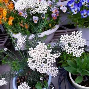 ライスフラワーが欲しくてネットで注文 一緒に極小輪のペチュニア ミニチュア ダイアンサスと斑入りの金魚草もネットで買ったもの 一緒に寄せ植えにしています 花が咲いてるのはライスフラワーとミニチュアだけ 成長楽しみにしてます🎵