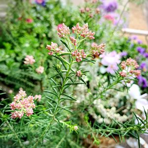 ライスフラワーのホワイトて表記あったけど薄いピンク♡ 鉢植えゾーンに作った花壇植えにしました꒰ •ω• ꒱゚+。:.゚ஐ♡