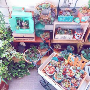 風が止み穏やかになったベランダで ゆっくり多肉ちゃんを眺められる 幸せな時間〜(*˘︶˘*).。.:*♡