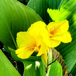 黄色いカンナ 通り道のお宅の花壇に 昨日の早朝散歩🚶♀️で