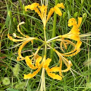 黄色い彼岸花 通り道のお宅の花壇に 朝の散歩道で