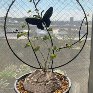 亀甲竜。 塊根に光が当たらないよう葉を展開して、傘さしてるみたいです⛱️