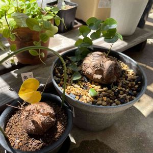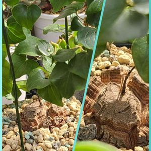 亀さん3体ともおやすみにzzzzz 鉢内の水分もとんだのでお休み棚に移動🐢💨 Dioscorea elephantipes アフリカ亀甲竜