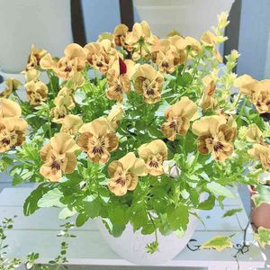 ビオラ🌱💛 雨に当たってもお花も葉っぱもまだまだ元気です🥰 あと少し楽しませてもらおうかな〜💓 1ポット100円のタグなしビオラでしたが、ここまで咲いてくれて本当にありがとう💕💕
