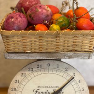 おはようございます😃今日も穏やかなお天気☀️ですね。先日採ってきたカラスウリと、お友達に頂いたムベです。ムベって初めて見ました😃なんて可愛いのでしょう❣️食べられるそうなので、その前にパシャリと記念に撮りました😊