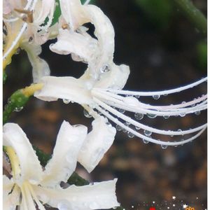 my garden 1日☔ チャンス到来⤴️ 雨粒写真撮れるわぁ~ 📷カシャッ リコリス🤍🟡 ヒガンバナ❤です 🏷️✨水滴は魔法使い✨ 🏷️白い貴婦人✨🏷️球根から育てる♡ 参加します