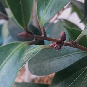 今日のお花🌸ツバキ 今年で7年目の黒椿 今は未だこんな感じです🥰 今年は土をリフレッシュしてあげるからね💖