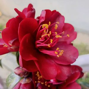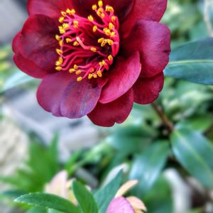 🌞おはようございます✨ 今年も 会えました🤗 我が家の🌸椿 ナイトライダー 私の📱✨ポチッ!では こんな色でしか 表現出来ないのが 残念ですが…💧 深紅と云うより 黒椿 母が 何十年か前に 植木鉢で育てようと庭に置いて…そのまま➰既に 根っこは植木鉢から地面へ💦💦 それでも 花数は少し減ってきてしまいましたが…今年も 綺麗に咲いてくれました🤗💕