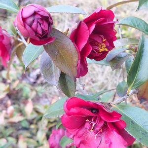 椿「エレガンスシャンパン」も次々と開花💮💮💮🌿 もう、さすがに重そうです😂 でも、まだまだ蕾はあり…、順調にほぼ最後まで咲いてくれる我が家の優等生です🥰 ❤️🖤ナイトライダー、 2号⬅️と1号➡️ よく見比べて観るとビミョーに違う🙄❓。1号が枯れかかり 無意識で挿し木していたよう🌱それが今年開花😃 枯れたと思い諦めきれず迎えた2号ですが、渋さに欠ける💦花形が少し違うような🔍️👀❓ 来季には、2号もナイトライダーらしく開花してくれることを期待して。隣り同士でこの後管理してみようと思います📝😃