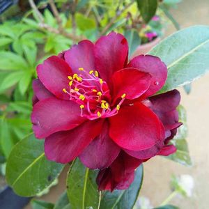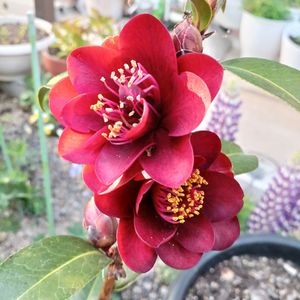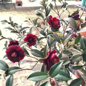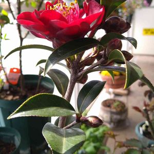 今日は とても良いお天気に成りました🤗 小さな植木鉢に植えられたままの 黒椿が たくさん開花が始まりました🥰