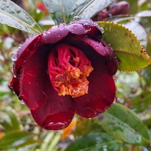 今元気に咲いてる椿⚡ 黒赤な花びらが魅力的! (相方担当)