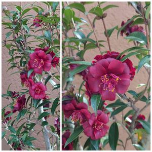 椿、「ナイトライダー」も咲き始めてくれました😄 葉の☃痛みはありますが蕾は例年並みかなっ🙆💕 我が家で4年、4回目の開花です