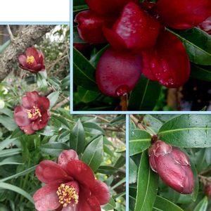 今日の我が家の椿🌺 黒椿ナイトライダ:..。o♬*゚ 名無し(岩根絞り)かしら?