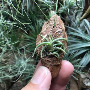 クシフィオイデス ルテア HR5212🌿 さっそくコルクに固定しました〜🔨 開花サイズになるまで2〜3年はかかりそうですが、チランジアは待つ植物。 それまでにガッチリ活着してくれればgoodです🎵