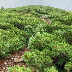 ハイマツの道をあるく 三角の山を超えて あと山4つ超えると女峰山に着くんです 雲の上 修験道の道は険しかった〜💦