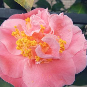 ~今日のお花~ ツバキ 🏷️ピンクワールドへようこそ おはようございます♪ ピンクの薔薇に似ている椿 私の名前は『別府』と言います♬♡ 花きセンター