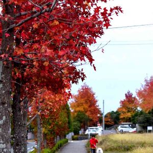 インフルエンザ予防接種の後の並木道。 見事に紅葉している木があったので、写真撮影♪