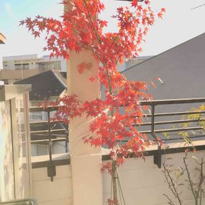 イロハモミジ🍁 10年くらい前に駅前のJA祭りで配っていたイロハモミジの苗木が、今までで一番の紅葉🍁を魅せてくれました🤗 丈が1.5mもあってベランダに鉢植えなので 大風のたびに倒れて… かわいそうだけど細い幹にウレタンシートを巻いてベランダの柱にくくりつけてます 今年は在宅日が多かったので手も掛けられて綺麗に色づいてくれました🙌🏻 すごくうれしい〜😆