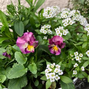 おはようございます☀ 今日の一枚は、ビオラのアール・ヌーヴォー キンダーガルテンとアリッサムとお花は咲いてませんがピンクのダイアンサスの寄せ植えです😊 ビオラとアリッサムの組み合わせは鉄板ですね❣️ 今日も良い日でありますように💕