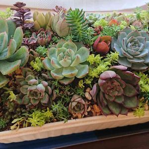 上司のお母さんが多肉好きと聞いたので、苗をお裾分けしました。木箱に入れて開けた時に驚いて欲しかったんだけど、いっぱい入れすぎて蓋閉まらなかったょ〜