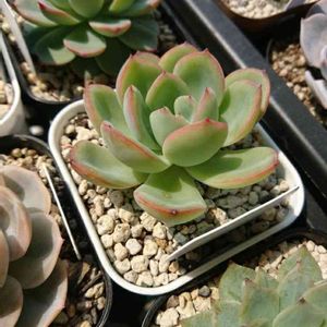 屋外管理組その① 自分なりに調べて 寒さに耐えれそうな子達を選抜 軒下&夜間はたてすのみ ファイト( ー̀дー́ )و エケベリア 若緑 韓国苗3人衆