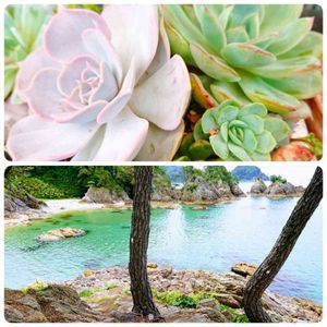 元気に成長中の寄せ植えたちと 松の木(笑) とても綺麗な景色だったのでつい(*´艸`) 鳥取砂丘の隣町の景色です 晴れて風がなかったらもっと 素敵な景色のはず✨ 仕事でこの町に来るようになって 初めて海辺に来ました😆 癒されました( ´ー`)