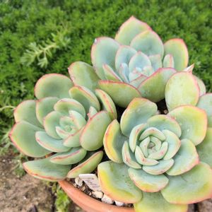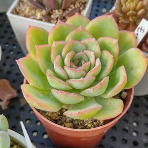 多肉さんご紹介140 モーニングデュー2210 少し前ですが、、、 10月のお迎え直後の姿 濃いめのピンクの縁どりが素敵✨ シルエットさんと似てるけれど、爪が柔らかめですね~ 最近の姿を見て、 「あんまり変わらへんなぁ🤔」と、 思っていたのですが、 そうではなかったです💗 またupします😊