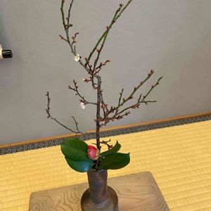 皆さまお久しぶりです! 年明けて茶道稽古などであまり写真を撮れてませんでした。先日枝振りの良い梅が少し咲いてましたので床の間に。