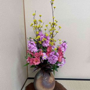 フラワーアレンジメントの教室に行ってきました🎵 今回は、節分のお花🥰