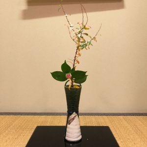 今日の教室の花 紅まんさくと曙椿 花入は 高取 (どちらも我が家の庭のもの) 花入に入れた花を撮るのはなかなか難しく 平面になって立体感がなくなります 実際はもう少しいいんですけどね😆 そういう花の撮り方も学びたいなぁ〜