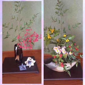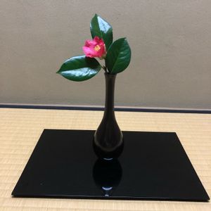 今日の教室の花 ブルーベリーの照り葉と嵯峨菊 葉が少し多いのはわかっているのですが さわると照り葉がポロポロ落ちてしまうので枝を落とせませんでした💦 花入は瓢(今日は炉開きなので) 炉になると花も草ものから 椿、木の物が主になります 椿は西王母が咲き終わってしまい 他のはまだまだ咲きそうもありません しばらくは菊でしのごうと思います